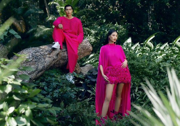 Gam màu hồng Fuchsia vẫn được các nhà mốt lăng xê qua mỗi bộ sưu tập. Nếu nam giới khoe vẻ đẹp sexy hình thể qua thiết kế áo len oversize thì chân váy ngắn đính hoa thủ công với áo lụa bay bổng giúp tôn nét hiện đại và trẻ trung bắt kịp xu hướng cho các cô gái.