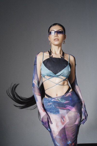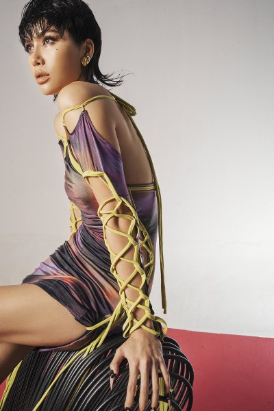 Loạt thiết kế cá tính của nhiều nhà mốt trẻ cũng được Minh Tú sử dụng trong bộ ảnh.