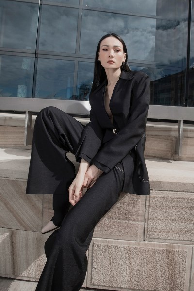 Lựa chọn trang phục có tông màu tương phản đen - trắng, cặp đôi thầy trò người mẫu thể hiện trọn vẹn tinh thần "trí tuệ nữ tính" được soi chiếu dưới góc nhìn đa chiều.
