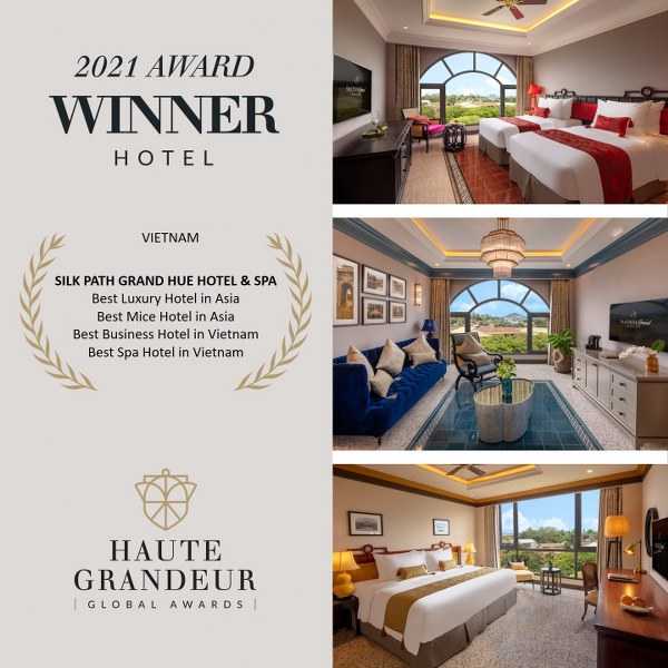 Vừa qua, Silk Path Grand Hue Hotel & Spa – khách sạn 5* sang trọng nhất xứ Cố đô – hân hạnh được xướng tên chiến thắng bốn trên sáu hạng mục quan trọng trong khuôn khổ Giải thưởng khách sạn toàn cầu 2021 của tổ chức Giải thưởng Du lịch uy tín thế giới Haute Grandeur.