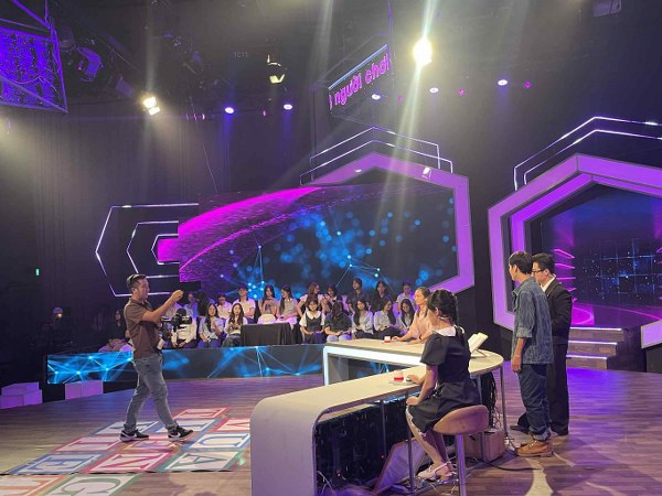 Từ việc dựng bối cảnh, chỉnh ánh sáng, thử âm thanh cho tới sự phối hợp ăn ý giữa MC, khách mời và ê-kíp sản xuất, tất cả đều diễn ra khẩn trương và nghiêm ngặt. Nếu trong giảng đường, lý thuyết đôi khi khô cứng và các thước phim chỉ là “sản phẩm hoàn thiện”, thì ở đây, sinh viên được tận mắt chứng kiến sự vận hành của một cỗ máy báo hình thực thụ – nơi kỷ luật, áp lực thời gian và tinh thần đồng đội trở thành thước đo bản lĩnh nghề báo.