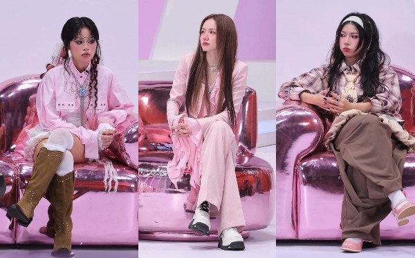 Từ trái qua gồm 52Hz, Phương Ly, Lyhan. Êkíp xây dựng không gian, bối cảnh ghi hình với sắc hồng chủ đạo, phù hợp tinh thần mà show hướng đến.