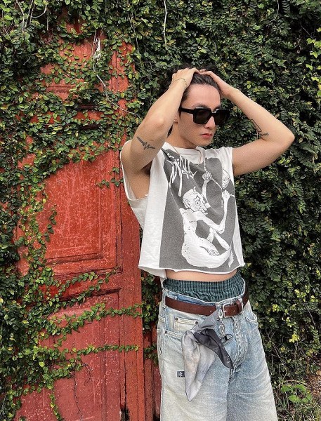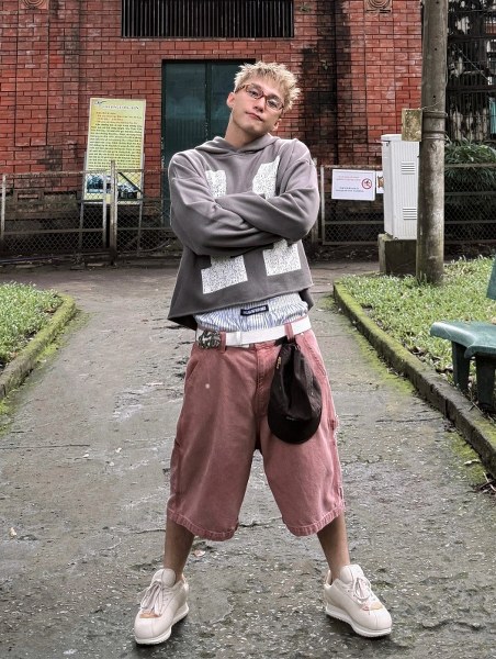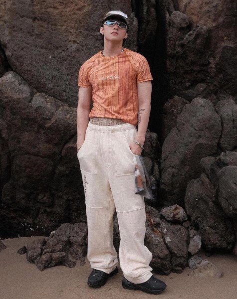 Kiểu mặc quần cạp trễ khoe nội y thường xuyên được ca sĩ áp dụng. Trong một lần biểu diễn ở Cần Thơ, anh chọn quần jeans mài bạc và quần đùi kẻ nâu, kết hợp crop top và giày Converse.