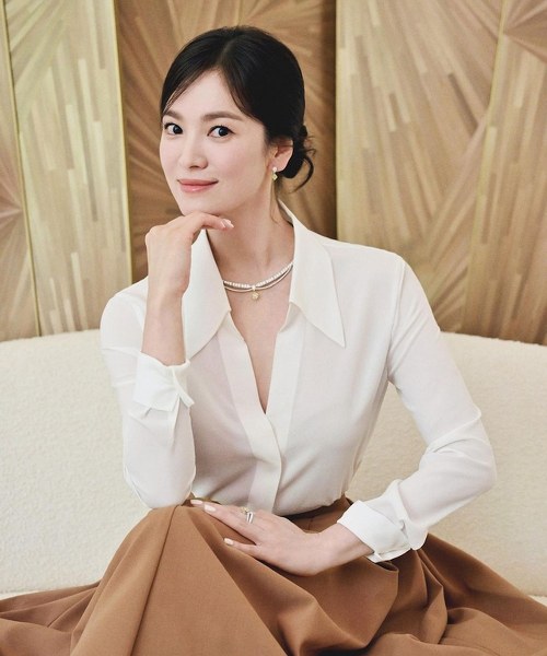 Song Hye Kyo cũng được các thương hiệu thời trang đình đám của Hàn Quốc chọn làm gương mặt đại diện, mỗi khoảnh khắc ăn mặc của cô đều là hình mẫu để người hâm mộ tham khảo. Với mái tóc dài buông xõa tự nhiên cùng lối trang điểm nhẹ nhàng, nàng thơ Song Hye Kyo toát sức cuốn hút mạnh mẽ khi thể hiện phong cách thời trang từ sang trọng, quyến rũ, thanh lịch đến cá tính, năng động.
