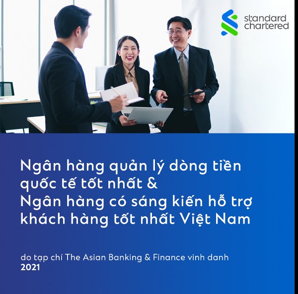 Standard Chartered Việt Nam vừa được vinh danh Ngân hàng quản lý dòng tiền quốc tế tốt nhất và Ngân hàng có sáng kiến hỗ trợ khách hàng tốt nhất năm 2021, trong hạng mục giải thưởng Ngân hàng bán buôn của tạp chí The Asian Banking & Finance.