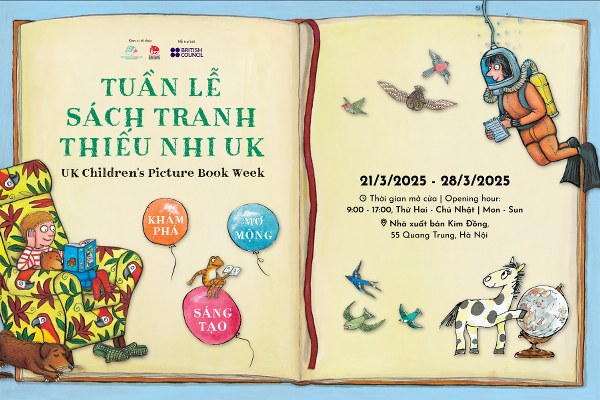 “Tuần lễ sách tranh thiếu nhi UK: Khám phá, mơ mộng, sáng tạo” chính thức khai mạc vào 14h00 ngày 21/3 với một chuỗi các hoạt động như trưng bày nghệ thuật, đọc sách sáng tạo, trò chuyện chuyên đề sẽ được tổ chức trong tuần lễ từ ngày 21/3 đến 28/3 tại NXB Kim Đồng, 55 Quang Trung, Hà Nội.