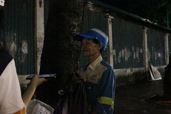 Ở cứ điểm Thanh Xuân, các bạn học sinh đã có cơ hội gặp gỡ, trò chuyện với một đội ngũ vệ sinh môi trường và nghe được những lời chia sẻ: “Bác làm nghề này cũng phải đến 28 năm, bình thường phải đến tầm 1 đến 2 giờ sáng bác mới có thể ăn tối, riêng hôm nay là ngày mùng 1, người ta đi lễ nên có nhiều rác hơn mọi ngày, chắc phải về muộn hơn.” Khi được trao tặng suất ăn tới từ dự án, bác cũng nói lời cảm ơn: “Nhận được món quà từ các cháu bác rất quý, rất mừng, bác chúc các cháu luôn mạnh khỏe, thuận lợi trong học tập và công việc!”.