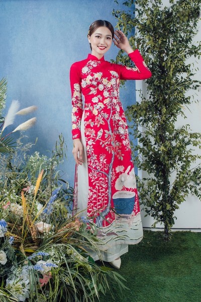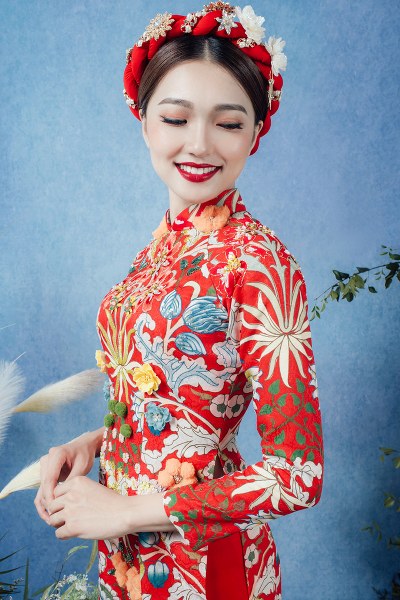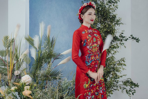 Áo dài cô dâu ngày càng đa dạng với muôn màu muôn trạng, có họa tiết hoa cỏ, chim muông giúp nàng dâu tái sử dụng vào các dịp khác nhau thay vì chỉ dùng trong ngày đại hỷ