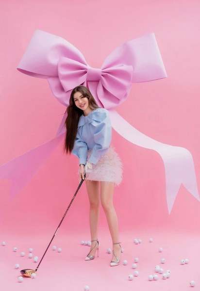 MC Hải Anh mang gậy golf tạo điểm nhấn trong bộ ảnh mới nhất. Cô diện chân váy ngắn lông vũ phối cùng áo sơ mi cách điệu khoe đôi chân dài đầy ấn tượng. Bộ trang phục được đính nơ cách điệu kết hợp cùng chân váy lông vũ bồng bềnh tưởng chừng rất "bánh bèo" nhưng khi đặt chung concept với những món đồ thể thao golf khỏe khoắn, Hải Anh lại tạo nên sức trẻ trung mềm mại của một "bóng hồng" khi kết thân với bộ môn thể thao golf.