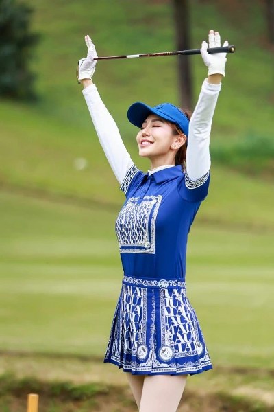 Nữ MC thường chọn những bộ cánh dễ thương, thoải mái nhưng cũng đủ khoe nét quyến rũ của cô khi đi chơi golf. Cô kết hợp chân váy ngắn xẻ trước phối cùng áo polo xanh, giày thể thao, tất lỡ tiệp màu tự tin khoe sắc vóc xinh đẹp.