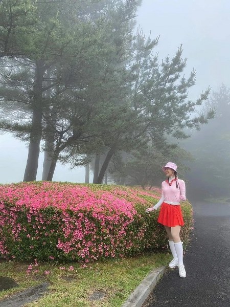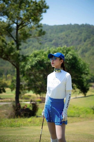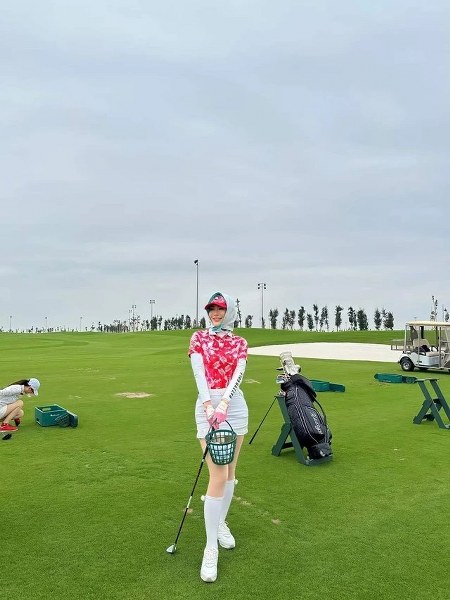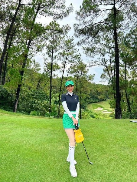 Đa phần người đẹp đều chọn diện set áo thun + chân váy ngắn + tất cao cổ khi ra sân golf của những thương hiệu uy tín và nổi tiếng. Nữ MC ưu ái lựa chọn những món đồ có màu sắc thanh nhã, nịnh mắt và cực kỳ tôn dáng.