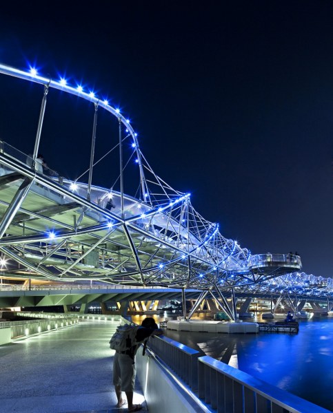 Helix Bridge trong ánh đèn lung linh khi màn đêm buông xuống (Nguồn: Christopher Frederick Jones, Angus Martin)