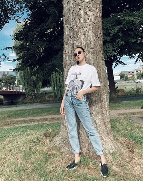Nữ diễn viên Tăng Thanh Hà tôn nét trẻ trung với outfit đầu mùa nắng phương Nam.