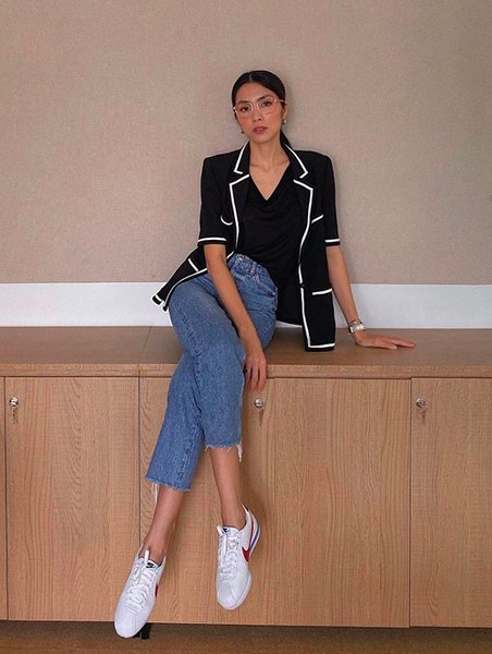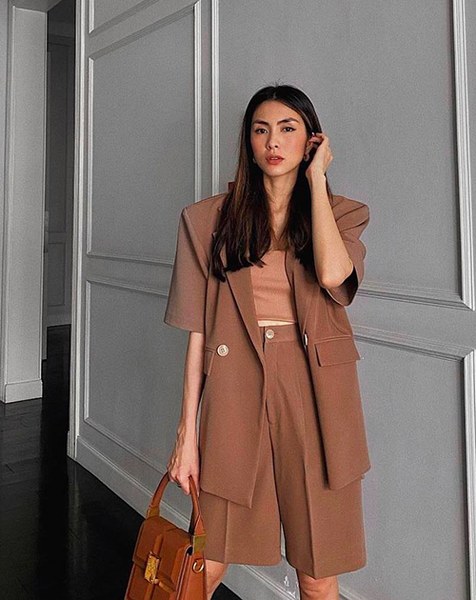 Tăng Thanh Hà được khen xây dựng thành công phong cách thanh lịch và hiện đại nhờ thường xuyên sử dụng áo blazer tay ngắn và váy liền thân.