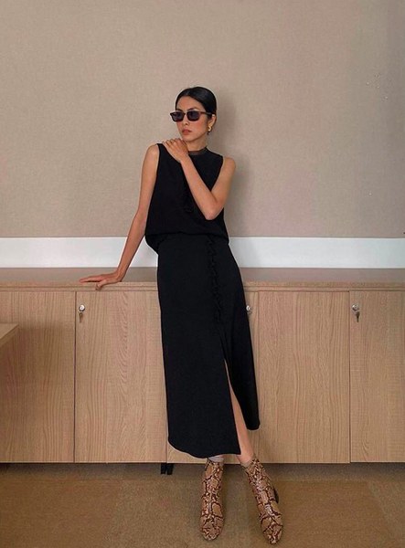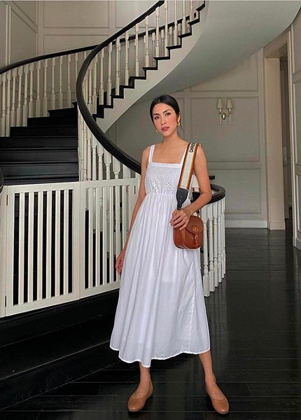 Tăng Thanh Hà trung thành với đầm liền thân dáng dài nhưng cô cũng chọn nhiều kiểu sát nách, dài tay, tay lỡ, phom không kén dáng để giúp hình ảnh luôn đa dạng và cuốn hút.
