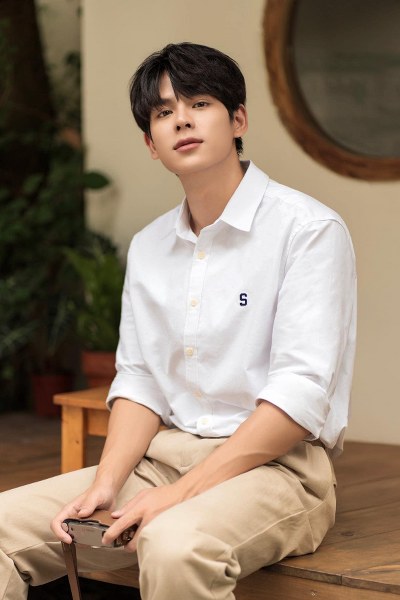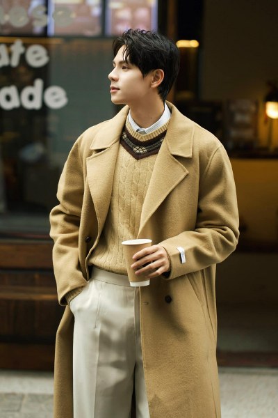 Thái Vũ chuộng các gam màu trung tính và các món đồ như quần kaki, áo len, áo blazer, giày Oxford.
