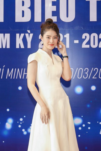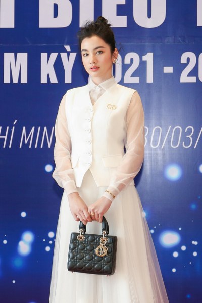 Xuất hiện tại sự kiện, Minh Tú chọn cho mình chiếc đầm phồng màu trắng cùng với áo khoác thanh lịch. Với phong cách thanh lịch, nhã nhặn, chân dài chọn kiểu tóc búi cao gọn gàng và lỗi trang điểm nhẹ tôn lên thần thái kiêu kỳ, lịch thiệp.