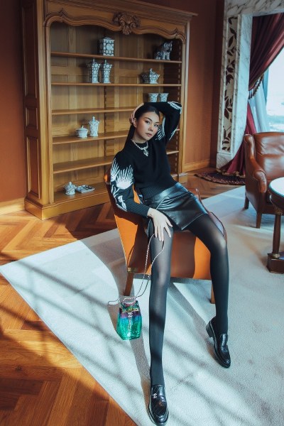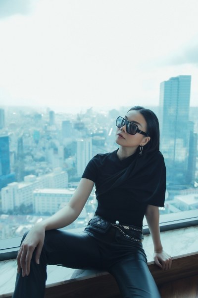 Siêu mẫu Thanh Hằng vừa khoe đường cong nuột nà với đầm cut-out ôm sát, vừa cá tính với áo thun và quần da.