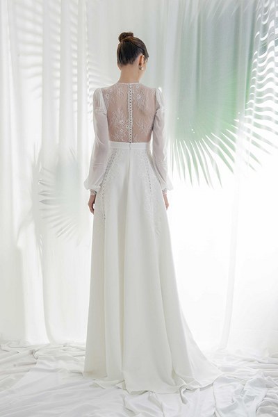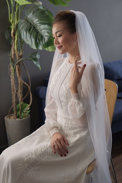 Mẫu đầm được kết hợp với voan cưới dài không họa tiết
