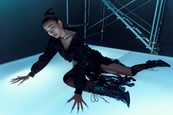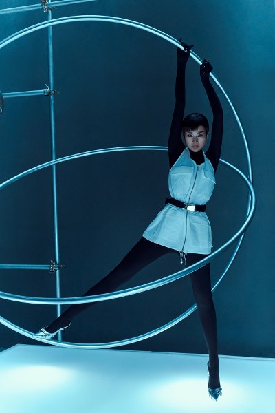 Siêu mẫu đội tóc giả kiểu bob ngắn, thực hiện những động tác khó như đu người, tạo dáng trên giày gót nhọn, thể hiện sự năng động theo tinh thần của bộ sưu tập dành cho giới trẻ.