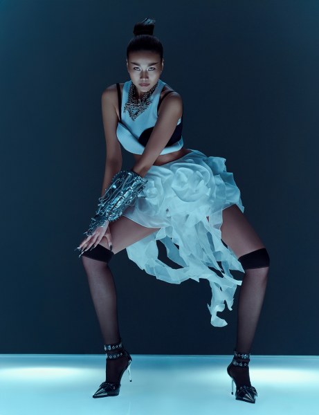 Người đẹp thể hiện những thiết kế mới nhất thuộc bộ sưu tập DMC do Đỗ Mạnh Cường thiết kế. Bộ ảnh lấy cảm hứng từ thời trang tương lai.