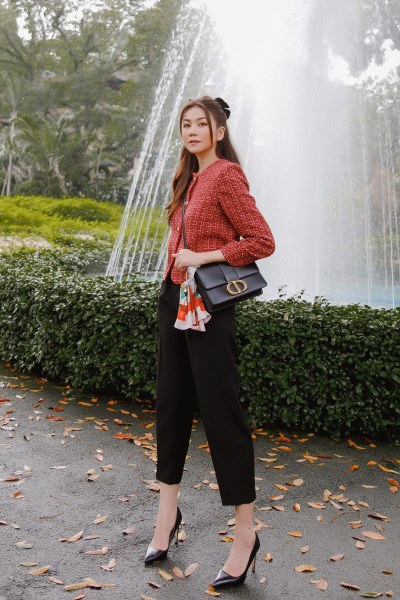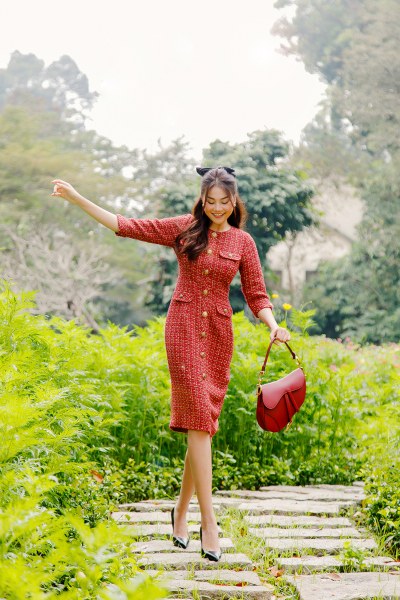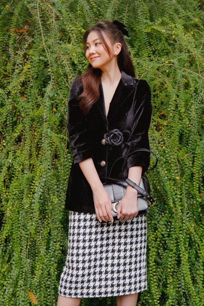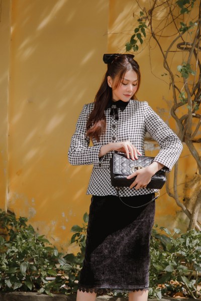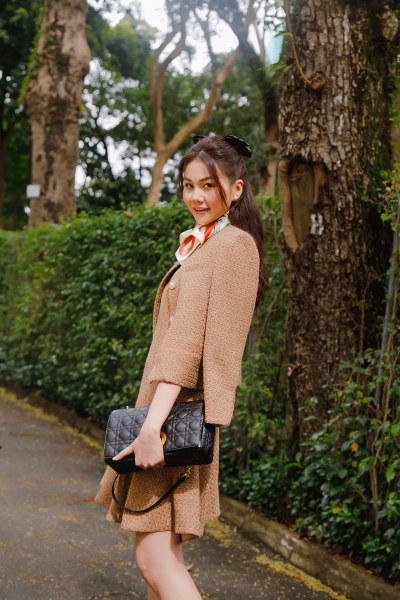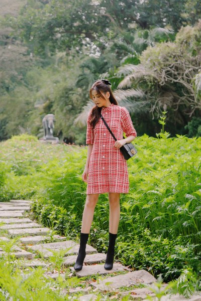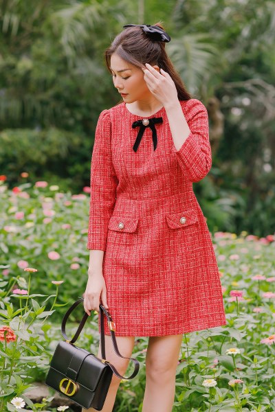 Siêu mẫu Thanh Hằng phối đồ thanh lịch với các mẫu váy vải tweed, áo nhung hợp mùa lạnh.