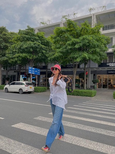 Denim là chất liệu dễ mặc, không kén vóc dáng và lứa tuổi, những quý cô trên 40 tuổi hoàn toàn có thể diện những set đồ với chất liệu đặc biệt này. Siêu mẫu Thanh Hằng cũng thường xuyên ứng dụng những set đồ denim vừa trẻ trung, năng động lại vừa "phổ thông" như quần denim mix áo sơ mi trắng.