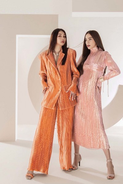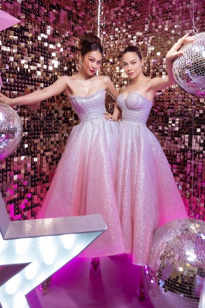 Hai mỹ nhân mặc chất liệu sequins trong một dự án năm 2022.