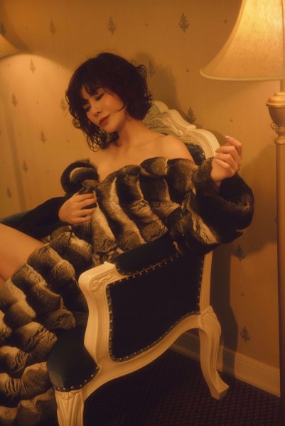 Thanh Hương để tóc ngắn, xoăn lơi, gương mặt bí ẩn, xinh đẹp khiến cô trông quyến rũ, hút hồn. Chiếc áo lông mặc hờ, giúp người đẹp trông sang chảnh, quý phái.