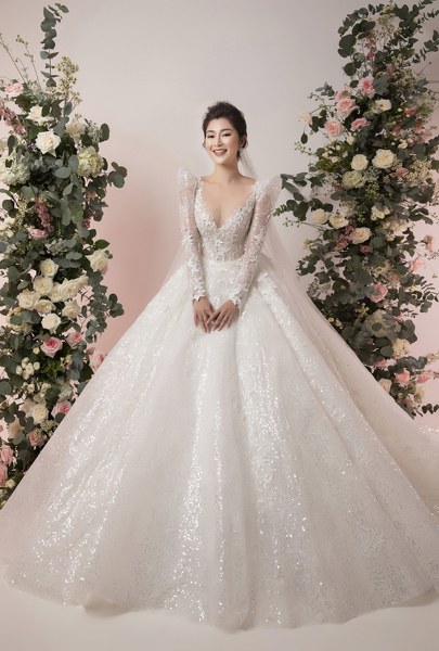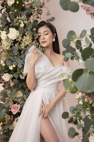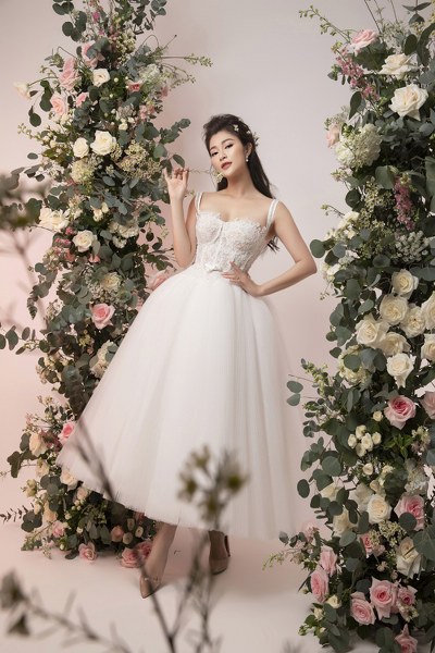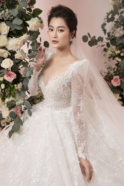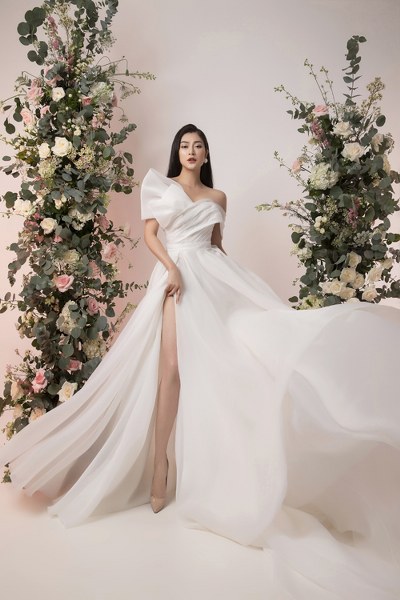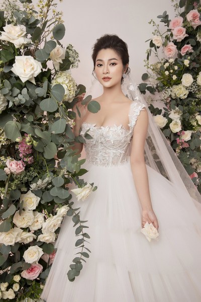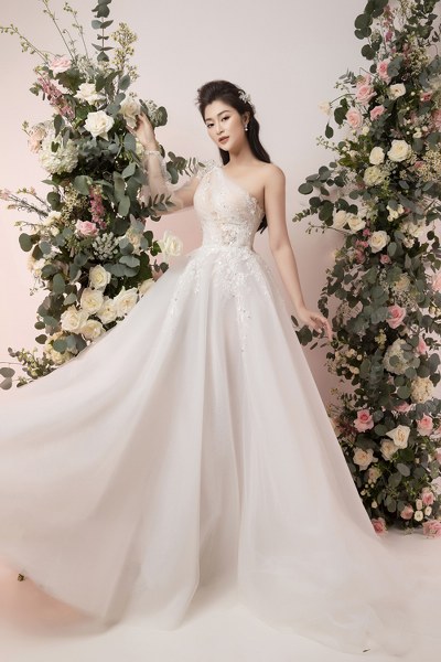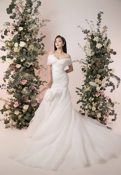 Váy đuôi cá, xòe phồng tôn ngực được Thanh Trúc gợi ý cho nàng dâu có điểm nhấn là thiết kế xếp tầng, ren nổi 3D, cầu vai dựng...
