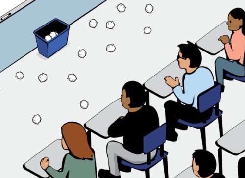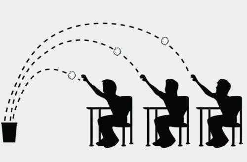 Tiếp đó, tất cả học sinh đều bắt đầu thử ném giấy, kết quả đúng như dự đoán, đa phần các học sinh ngồi hàng trên đều ném giấy vào thùng thành công (nhưng không hoàn toàn trúng 100%), còn các em ngồi ở hàng sau lại chỉ có một số ném vào được.