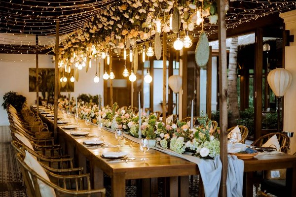 Tiệc cầu hôn lãng mạn ngập tràn ánh nến lung linh sẽ được tổ chức trên bãi biển, cạnh một trong ba hồ bơi của khu nghỉ dưỡng hay trong khuôn viên biệt thự, cùng với đầu bếp và nhân viên phục vụ riêng. Các cặp đôi có thể lựa chọn thực đơn Âu hoặc Á, các món khai vị điển hình như ‘Gỏi bắp chuối với sò điệp và hàu đút lò’ và ‘Súp nấm cùng với thịt xông khói cuộn cồi sò điệp và bánh mì bơ tỏi’; hay các món chính như ‘Cá mú tươi phi lê hấp cùng với sốt nấm đông cô và hành lá’ và ‘Sườn cừu nướng cùng với rau củ Địa Trung Hải và tỏi ngọt’.