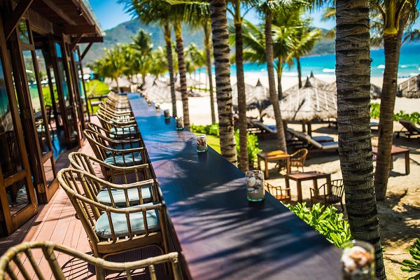 Khu vực sảnh rộng, nội thất bên trong thoáng đãng có sức chứa lên tới 180 chỗ ngồi, Beach Club có quầy bar dài nhất ở Cam Ranh, lên đến 18,5 mét, với tầm nhìn toàn cảnh ra biển với bãi cát trắng mịn, nước biển màu ngọc lam và những mũi đất nhô ra biển với hình dáng ấn tượng.