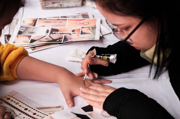 Hoạt động vẽ henna tuy mới mẻ nhưng đã thu hút không ít bạn trẻ tham gia