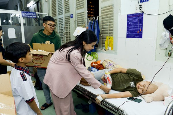 Tối qua (13/9), Hồng Đăng cũng đã cùng câu lạc bộ Nét chữ xinh và Quỹ thiện nguyện One Life phối hợp với Bệnh viện Nhi Đồng 2 (TPHCM) tổ chức chương trình "Trung thu vui ca". Tại đây, người đẹp đã cùng các bệnh nhi tham gia nhiều hoạt động như tô tượng, trang trí lồng đèn.