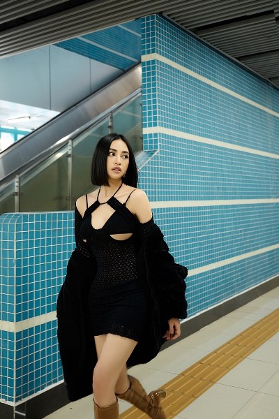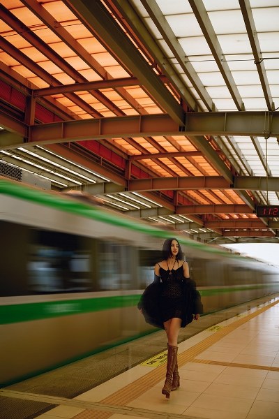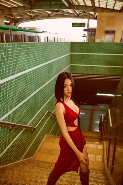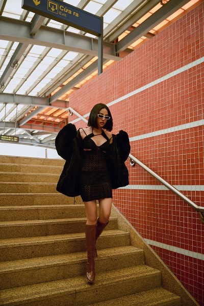 Trong chuyến làm việc tại thủ đô, người mẫu Thiên Nga The Face tranh thủ ghé chơi và thực hiện bộ ảnh tại các ga tàu trên cao mới mở cửa.
