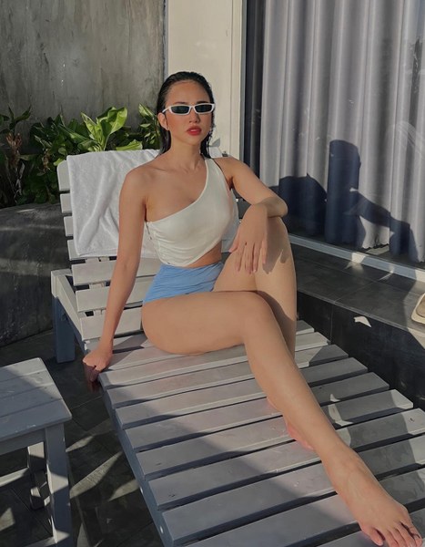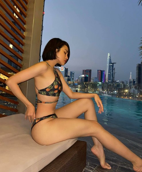 Có thân hình gợi cảm, người mẫu - diễn viên Thiên Nga thích mặc những bộ đồ tắm táo bạo để khoe lợi thế.