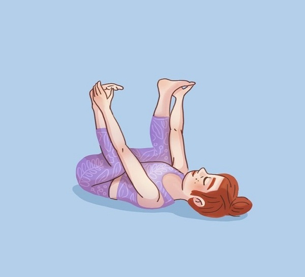 Nằm ngửa, thở ra và gập đầu gối về phía bụng của bạn.