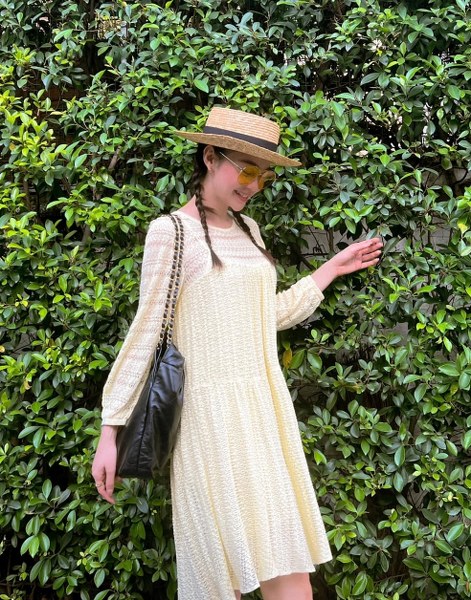 Khi đi nghỉ dưỡng hồi đầu tháng, ca sĩ chọn đầm lưới dáng suông ăn ý mũ phớt. Chiếc kính Balenciaga giúp gương mặt thêm cuốn hút.