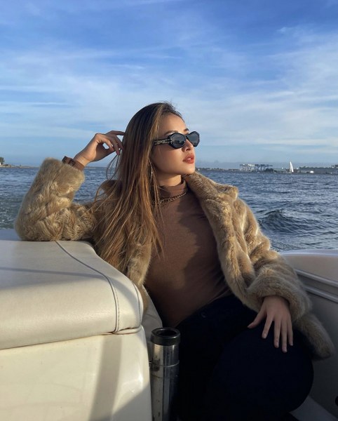 Phong cách sang chảnh của Chi Pu với set đồ đúng chất thu đông, gồm áo khoác lông, áo dệt kim cổ lọ và quần jeans đen.