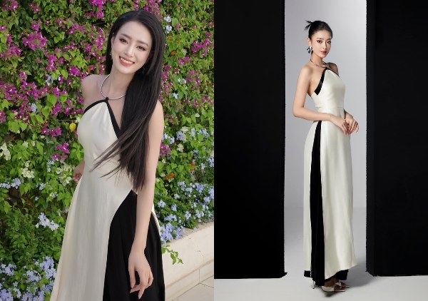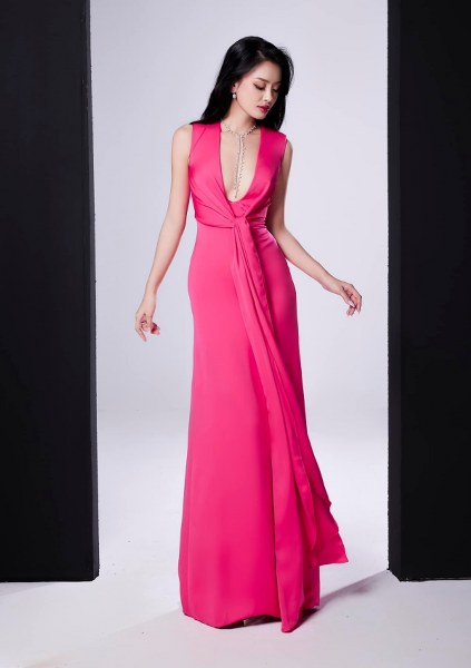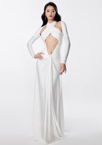 Đầm xẻ đùi, gắn thêm tà giúp cô nổi bật giữa dàn thí sinh.