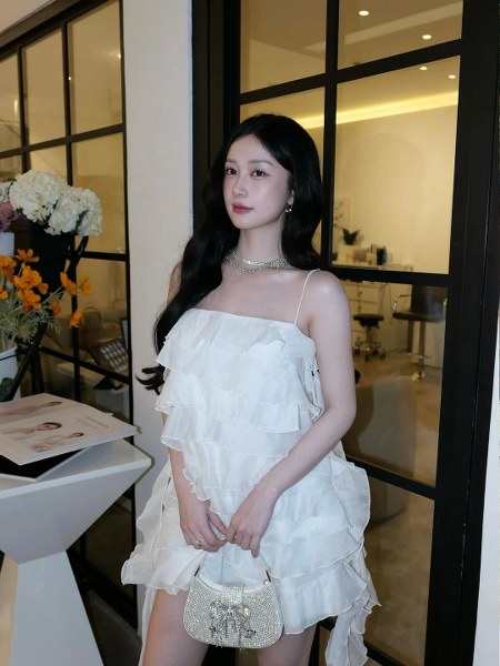Váy xếp bèo hot từ năm 2023 được Jun Vũ tiếp tục theo đuổi.