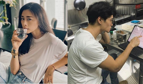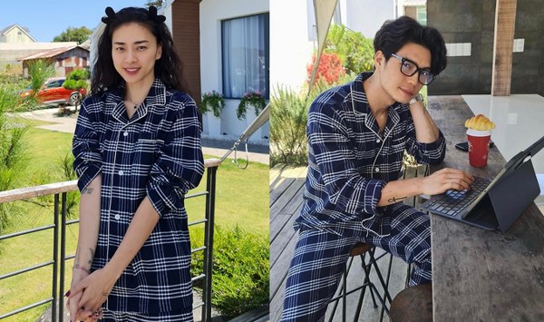 Pyjama đồng điệu sắc màu và chất liệu thường được Ngô Thanh Vân chọn mặc khi ở nhà cùng Huy Trần.