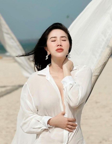 Nhiều tháng qua, ca sĩ Bảo Thy chuộng trang phục suông rộng nên ít người nhận ra cô đang mang thai con đầu lòng.