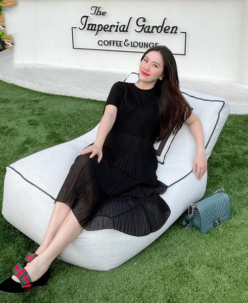 Cách chọn trang phục của Bảo Thy cũng được khen giấu dáng tốt, khoe được phong thái ‘phu nhân’.