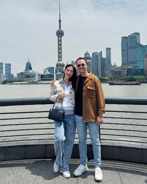 Vợ chồng diễn viên cùng diện quần jeans với áo khoác túi hộp và sneakers trắng. Họ nhiều lần ăn vận đồng điệu từ hồi hẹn hò đến nay. Sau khi kết hôn, Diễm My cho biết thay đổi cách mặc. Cô hạn chế những bộ đồ gợi cảm, chuyển sang chọn trang phục kín đáo, thể hiện sự chững chạc, nghiêm túc hơn. Thỉnh thoảng, cô diện đồ phá cách, tạo sự trẻ trung.