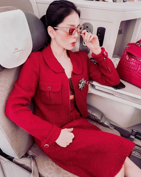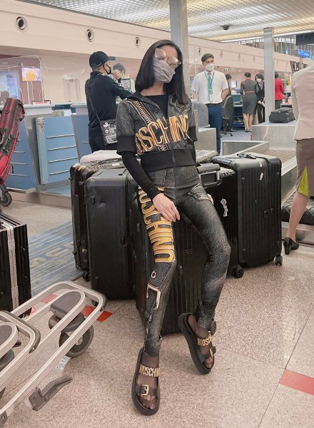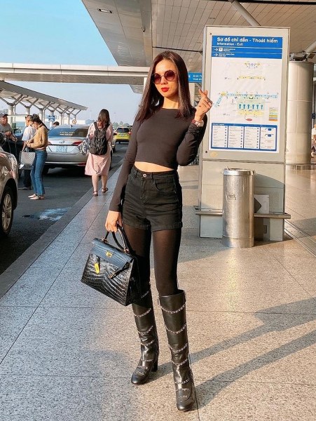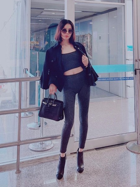 Khi đi sân bay, ca sĩ Lệ Quyên thường diện nguyên \"cây\" hàng hiệu của các thương hiệu nổi tiếng.