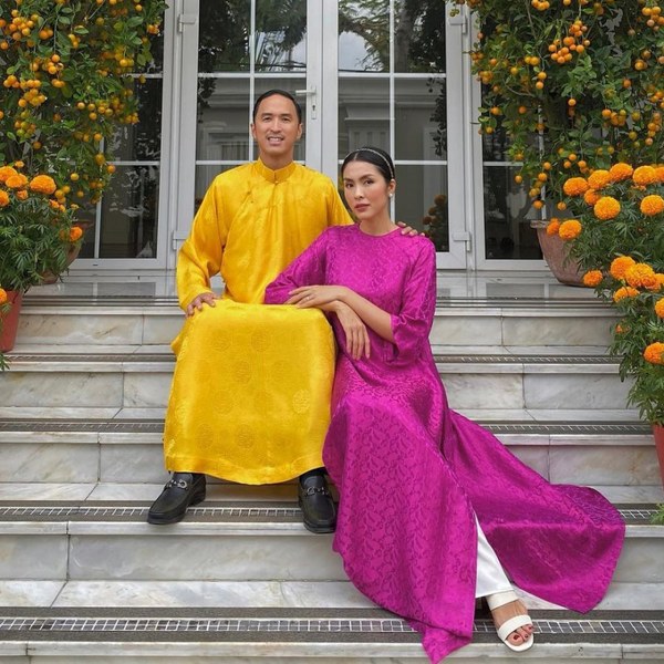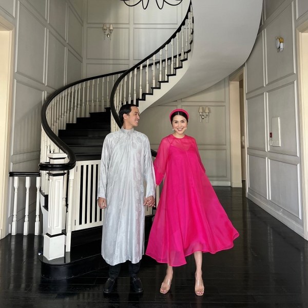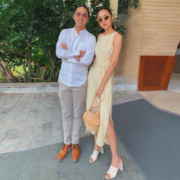 Thời trang sánh đối của vợ chồng Tăng Thanh Hà là những bộ quần áo thanh lịch, màu tối giản, có đôi lúc đồng điệu.