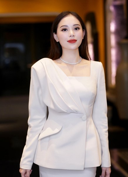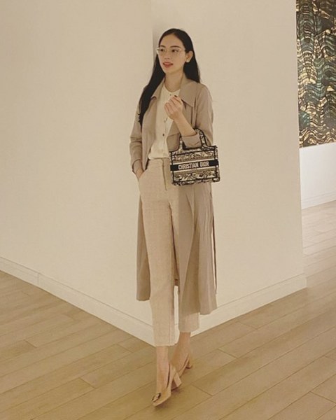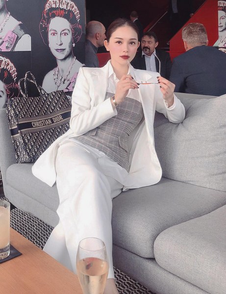 Bạn gái thiếu gia Philip Nguyễn - hot girl Linh Rin - chuộng trang phục tông be với cách phối monochrome để tạo vẻ thanh lịch, sang trọng.