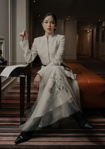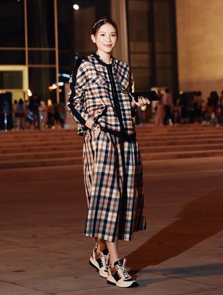 Những lúc muốn tạo diện mạo ấn tượng hơn để dự sự kiện thời trang, người đẹp 28 tuổi có thể mặc đồ họa tiết, tuy nhiên vẫn theo quy tắc áo và váy đồng điệu.